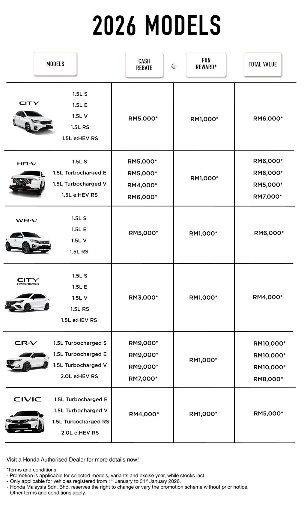 Senarai promosi dan rebet untuk semua kereta Honda